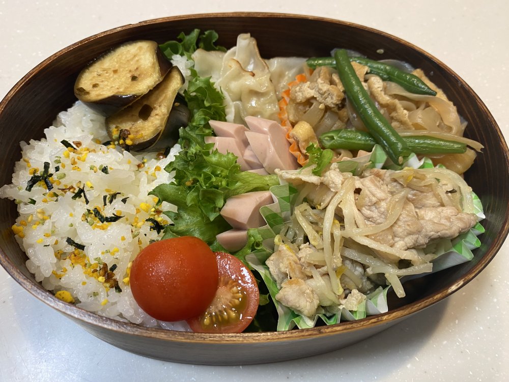 豚のすりおろし生姜焼き+しらたきとお揚げの煮込み+ひと口餃子⤴