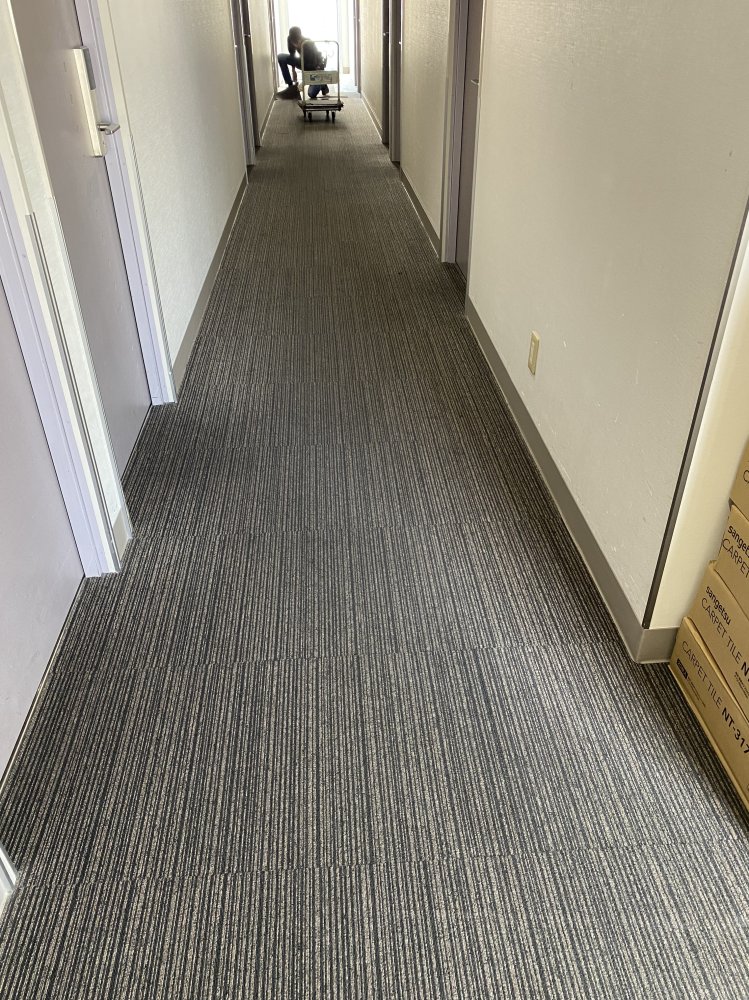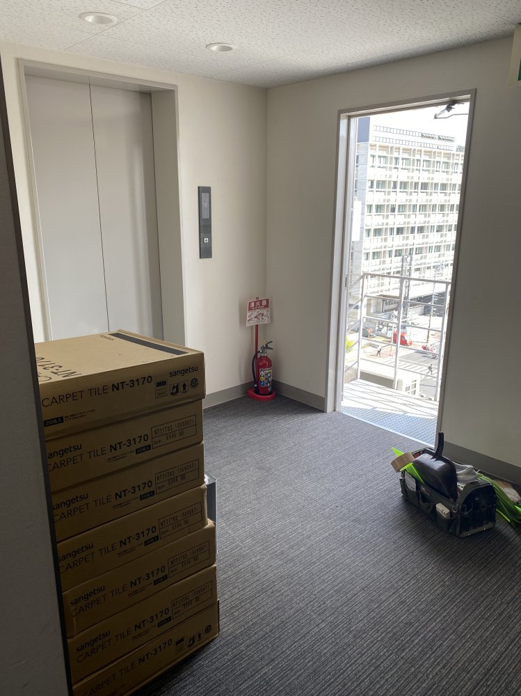 で、今日からは駅前の<プチホテル>にて、3階から8階までの各フロアの通路の床を張替える工事がスタート🏁