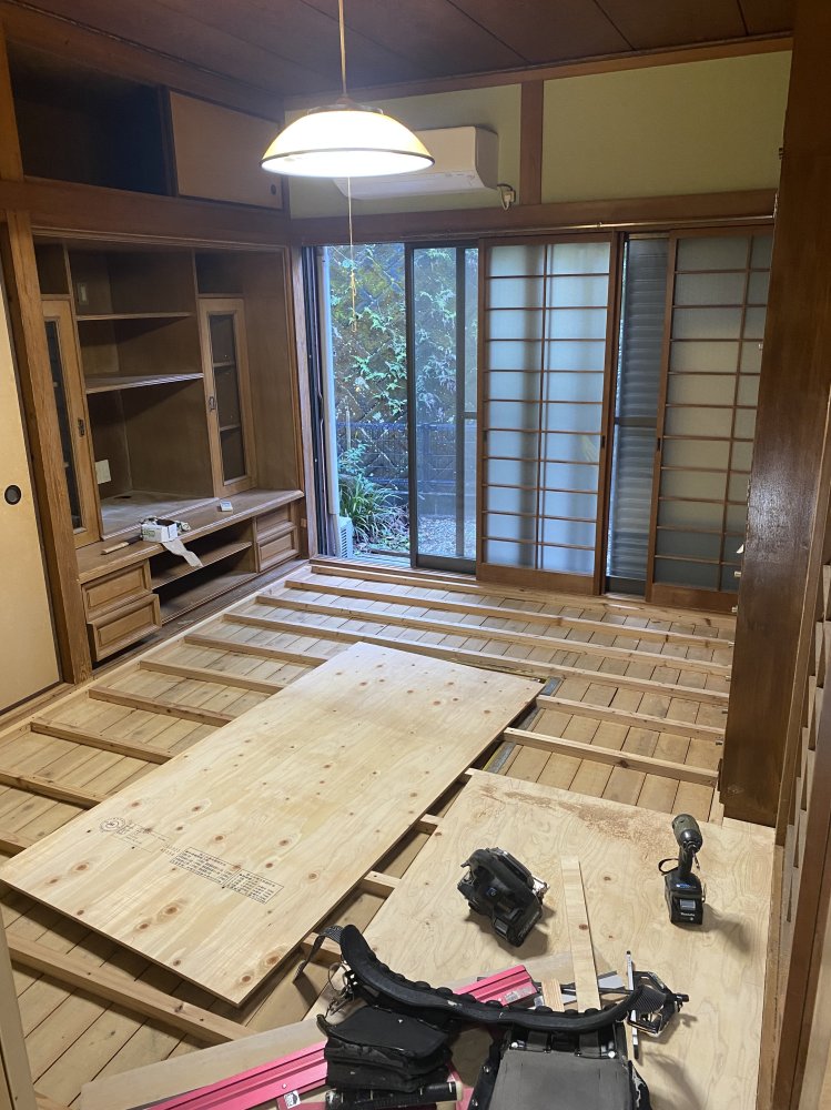今回は畳部屋をフローリングに、天井はクロスに変更(__)
